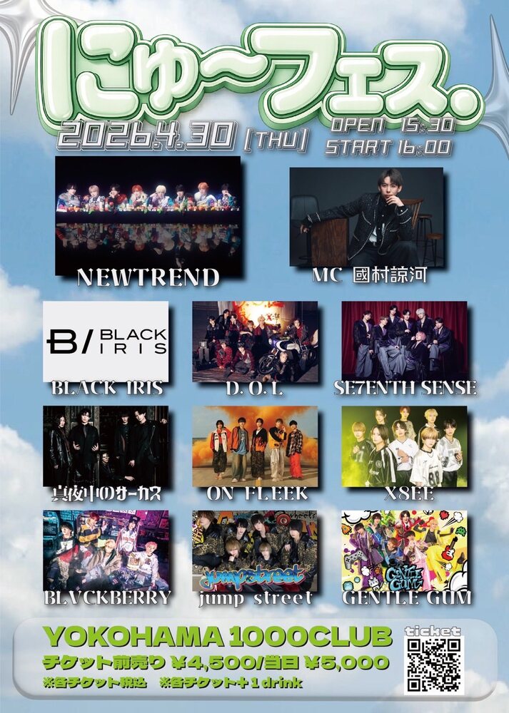【真夜中のサーカス】にゅ〜フェス. SCHEDULE 2026/04/30(木) 横浜1000CLUB 地図を表示 【日程】 2026年4月30日(木) OPEN 15:30 / START 16:00 チケットはこちら URLをコピーする 報告する
